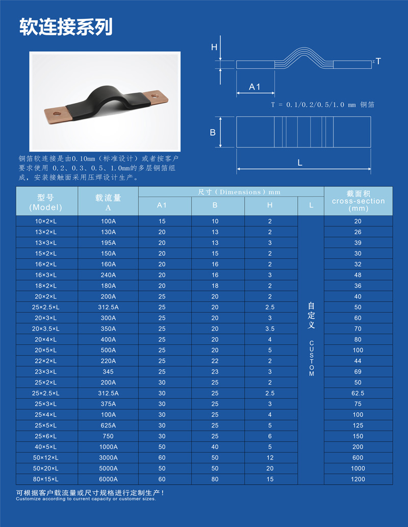 柔性母排由多層高純度電解銅薄片疊壓而成,具備卓越的導(dǎo)電性、散熱性能和抗震能力。表面采用熱縮管絕緣處理的柔性母排,絕緣性能優(yōu)異,廣泛應(yīng)用于電動(dòng)汽車、變壓器和配電板等領(lǐng)域的電力連接,能夠滿足高可靠性和安全性的使用要求。